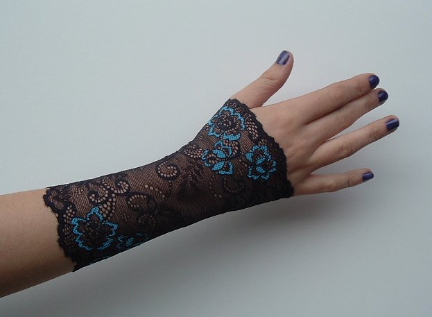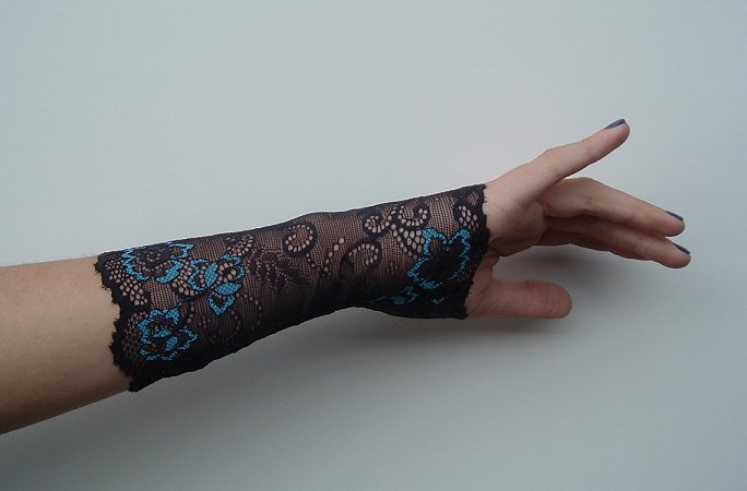 Stretch Lace. As lace can easily be snagged by rough fingernails or rings, it is recommended to remove any pointy/rough rings and make sure your nails are smooth when wearing these. Washing them in a laundry/delicates bag is recommended so they don’t get lost or damaged in the wash.