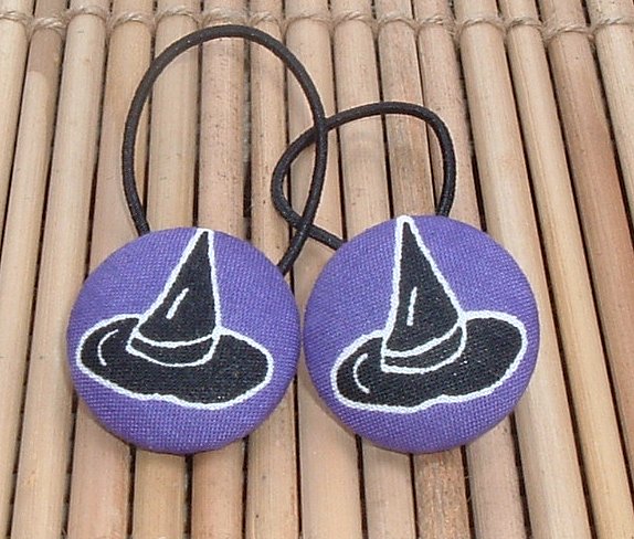 This is a pair of hair elastics (“ponytailers”) made from fabric covered buttons. Sold as a pair of 2. Buttons are approx 3cm wide.